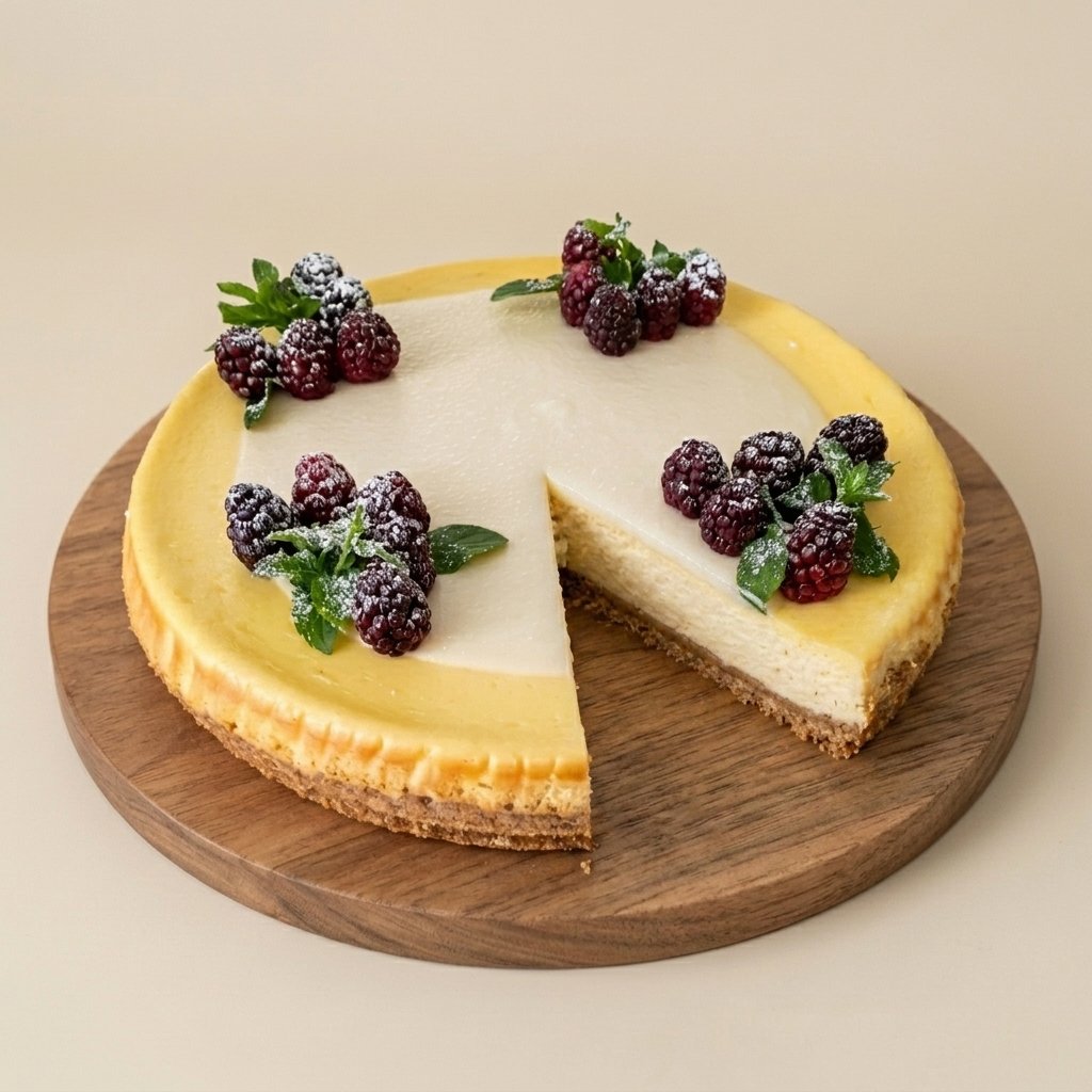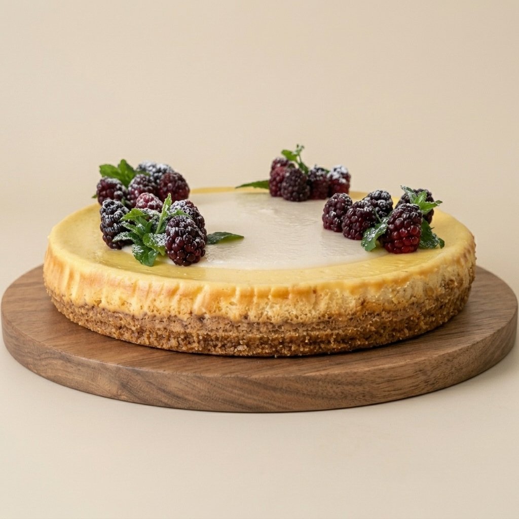 Tradicional recetas de Nueva York de queso Philadelphia y base de galleta, nuez y jalea natural de zarzamora